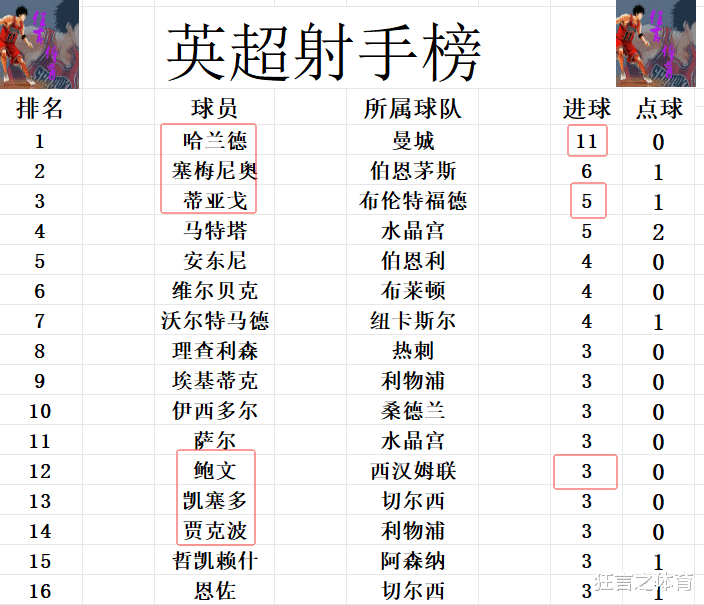 Xét về danh sách vua phá lưới, Harland dẫn đầu với 11 bàn thắng. Trong cuộc so tài khoảng cách vớiMbappe, Harland vẫn có chút lợi thế. Semenho đứng thứ 2 với 6 bàn thắng. Thiago bỏ lỡ nhiều cơ hội và chỉ ghi được 1 bàn hôm nay, đuổi kịp Mateta và đứng thứ 3 với 5 bàn thắng. Bowen đã không thể ghi bàn hôm nay, nhưng anh vẫn lọt vào top 10 với 3 bàn thắng của Ekitic, Jakpo, Enzo, Dzhekeresh và những người khác.