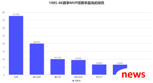 Dữ liệu tuyệt vời và bản ghi phóng đại, MVP của Larry Bird trong mùa này dường như không gây tranh cãi nhiều. Mặc dù ông đã được bầu làm MVP mùa thường xuyên trong hai mùa liên tiếp, tỷ lệ phiếu bầu của Bird trong mùa giải này vẫn cao tới 37,72%. Có lẽ không phải là các cử tri không cho người chơi khác cơ hội, mà là kỷ lục của Celtics mùa này quá cường điệu. Cuộc bầu cử MVP trong ba mùa liên tiếp đã trở thành người duy nhất trong lịch sử NBA. Người gần nhất là James và Jokic sau đó, nhưng cả hai đã không thực sự đạt được thành tích này.