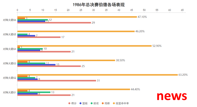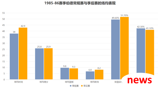 Trong lịch sử, có rất ít người chơi đã giành được MVP và FMVP trong một mùa. Ngoài Michael Jordan và James, chỉ còn lại Larry Bird. MVP có nghĩa là người chơi có giá trị nhất và phản ánh giá trị trực quan nhất là hiệu suất dữ liệu của người chơi. Mùa này, Larry Bird trung bình 25,8 điểm, 9,8 rebound, 6,8 hỗ trợ và 2 lần đánh cắp. Trong Celtics, anh đã xếp hạng đầu tiên trong nhóm trong bốn dữ liệu cơ bản ngoại trừ các khối trung bình.