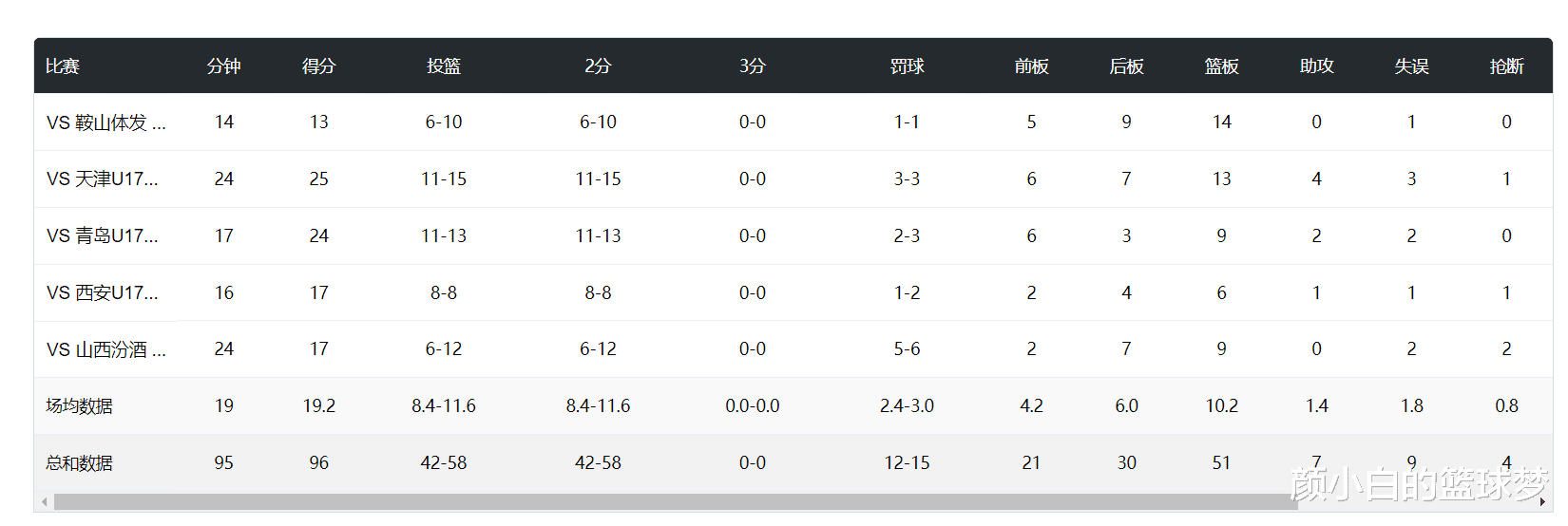 Có thể thấy rằng anh ta chỉ xuất hiện trong hai trò chơi, 24 phút và phần còn lại của trò chơi chưa đầy 20 phút. Anh ta trung bình 19 phút mỗi trận, ghi được 19,2 điểm, 10,2 rebound, 1,4 hỗ trợ, 0,8 đánh cắp và 1,4 khối, với tỷ lệ bắn là 72,4%và tỷ lệ bắn miễn phí là 80%. Anh ta không có điểm yếu về kết thúc tấn công ngoại trừ thiếu bắn ba điểm.