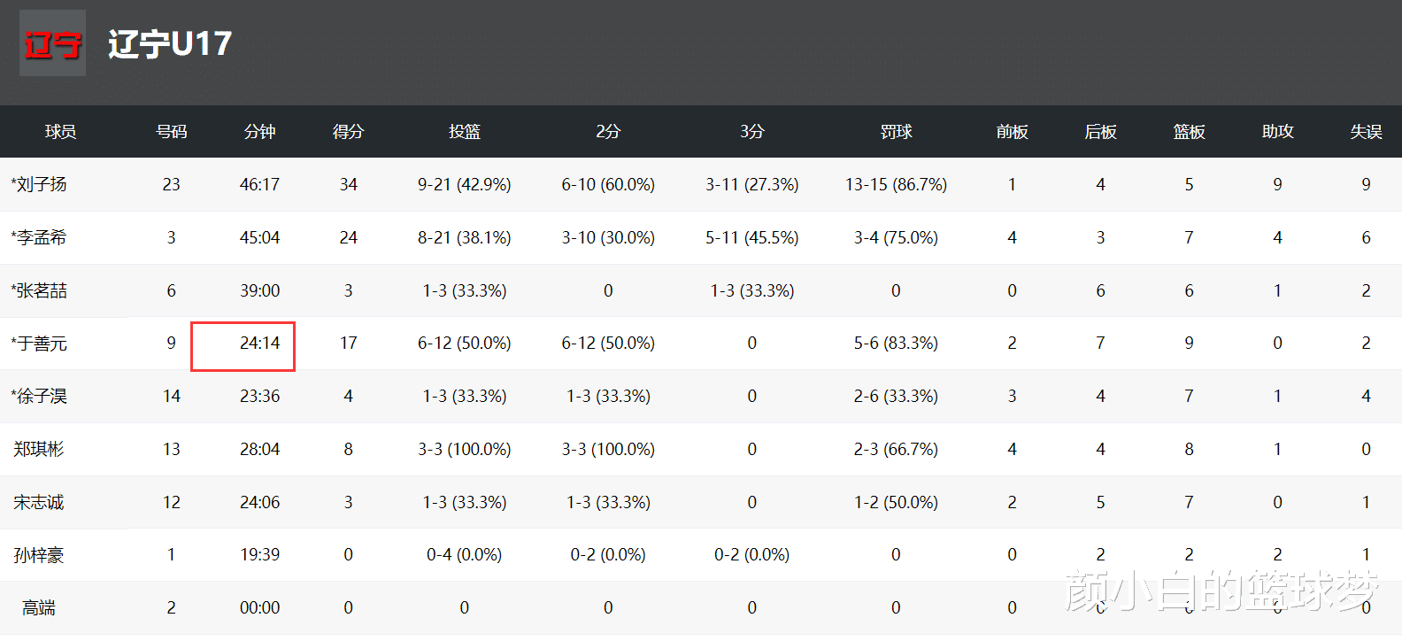 Liên đoàn bóng rổ U17 quốc gia, một trận đấu tập trung trong bộ phận Liêu Ninh. Liêu Ninh đánh bại Shanxi U17 trong gấp đôi giờ làm việc 93-88. Trò chơi này rất thú vị. Liêu Ninh đã dẫn 11 điểm trong quý đầu tiên, nhưng đã được Shanxi cân bằng trong quý thứ hai và quý thứ ba. Hai đội đã tham gia thêm giờ 20-20 trong quý vừa qua và lần làm thêm giờ đầu tiên 11-11. Liêu Ninh chỉ giành được giờ làm thêm thứ hai.